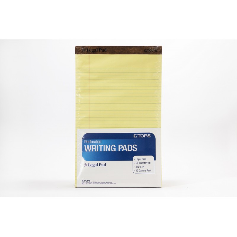 TOPS Writing Pads, Legal Ruled, 8½x14, 12pk, Canary