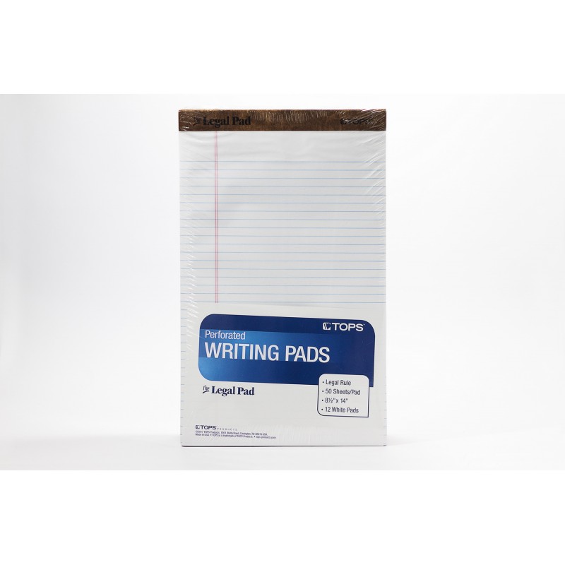 TOPS Writing Pads, Legal Ruled, 8½x14, 12pk, White